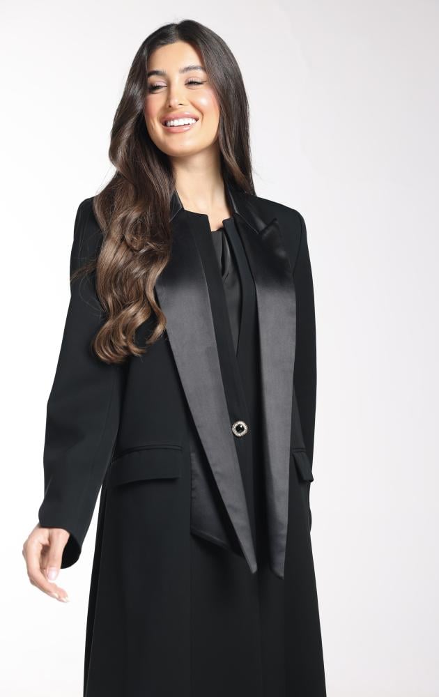 القماش: أجود أنواع الكريب الأسود لضمان نعومة وفخامة استثنائية.